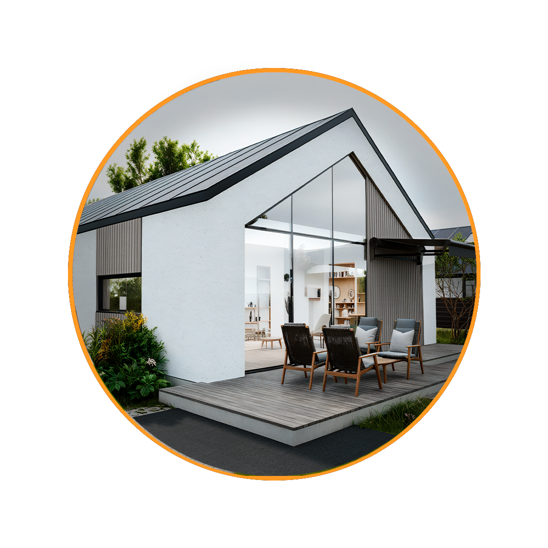 - Фасад: утепление пенополистиролом, декоративная штукатурка
